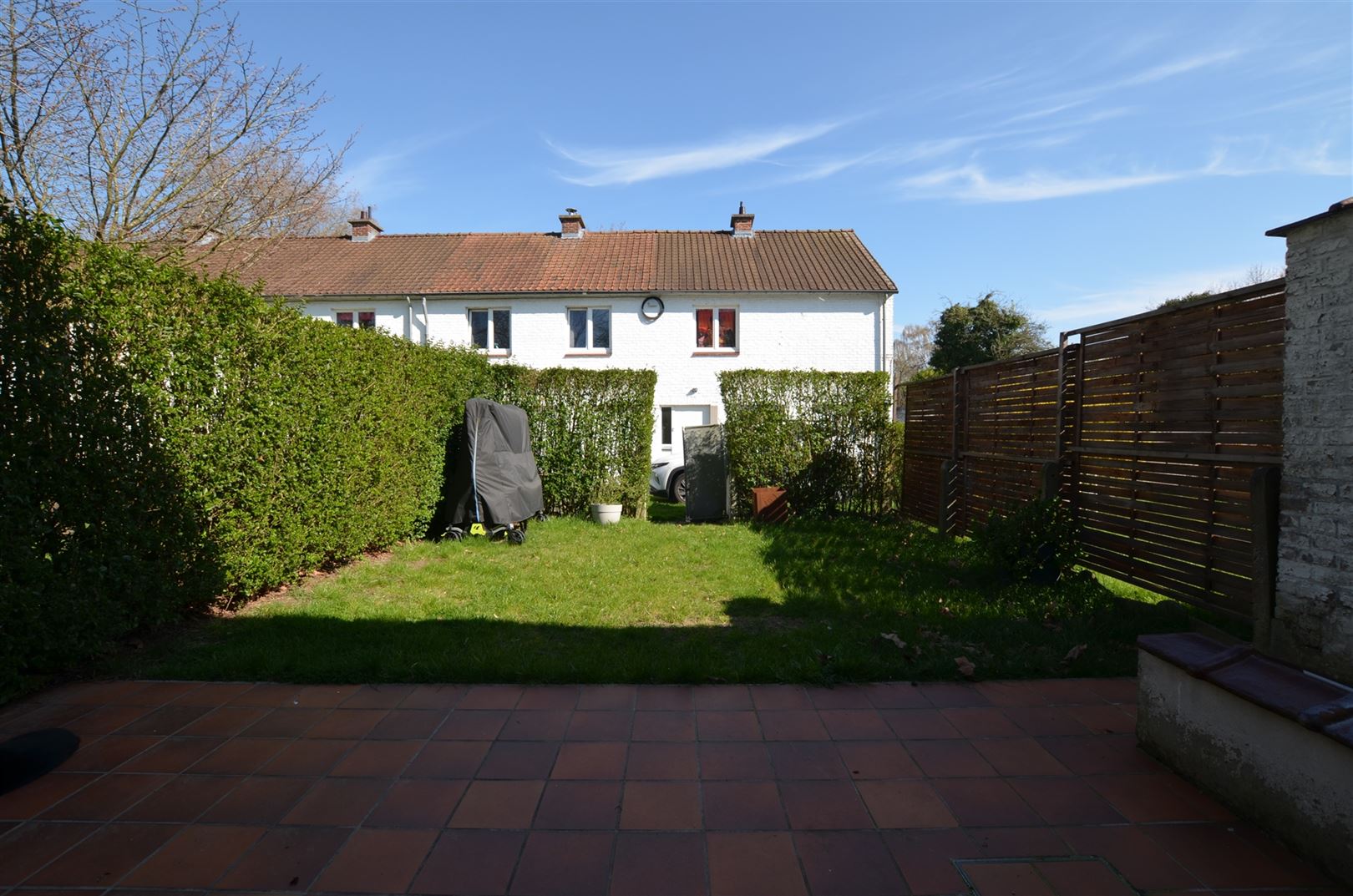 Terrasse extérieure et jardinet.